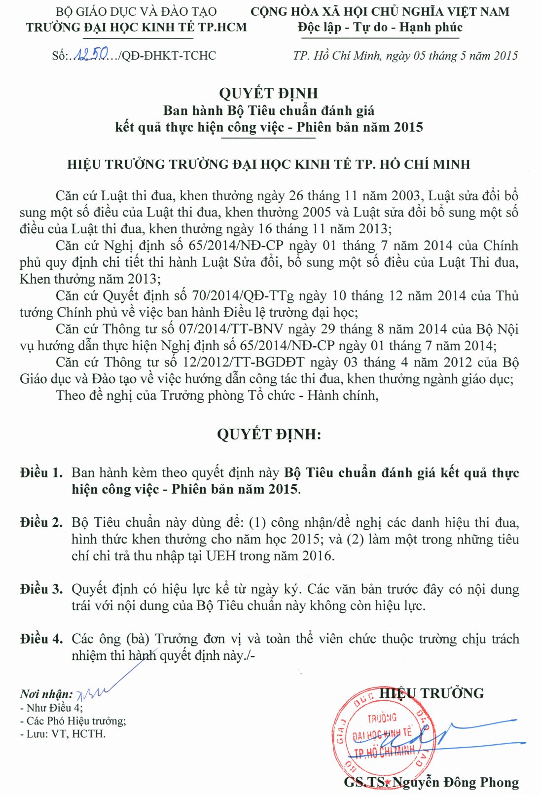 Quyết định ban hành Bộ Tiêu chuẩn đánh giá kết quả thực hiện công việc – Phiên bản năm 2015
