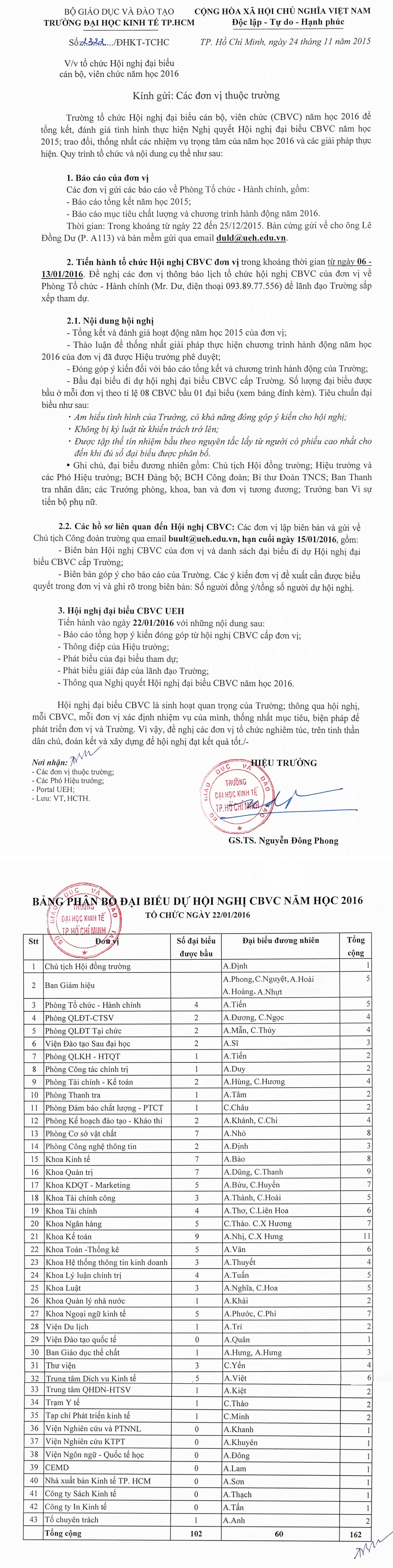 Công văn về việc tổ chức Hội nghị đại biểu cán bộ, viên chức năm học 2016
