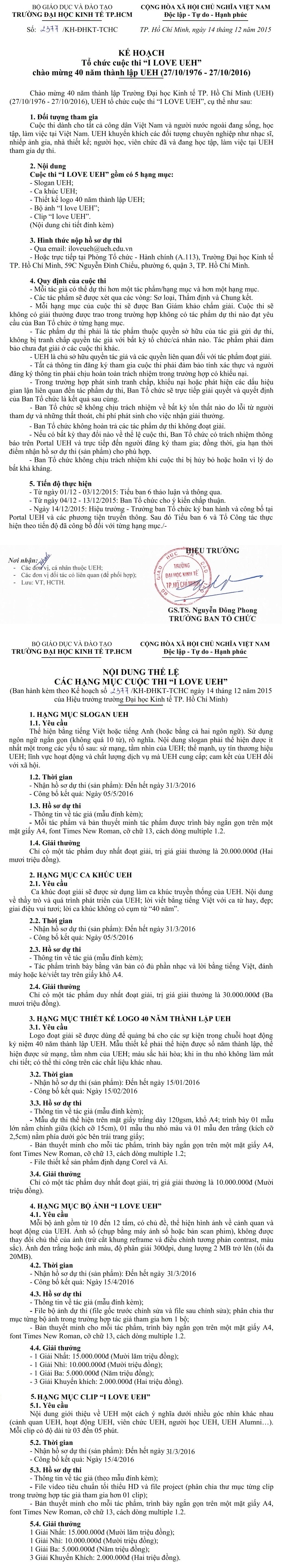 Cuộc thi “I LOVE UEH” chào mừng 40 năm thành lập UEH (27/10/1976 – 27/10/2016)