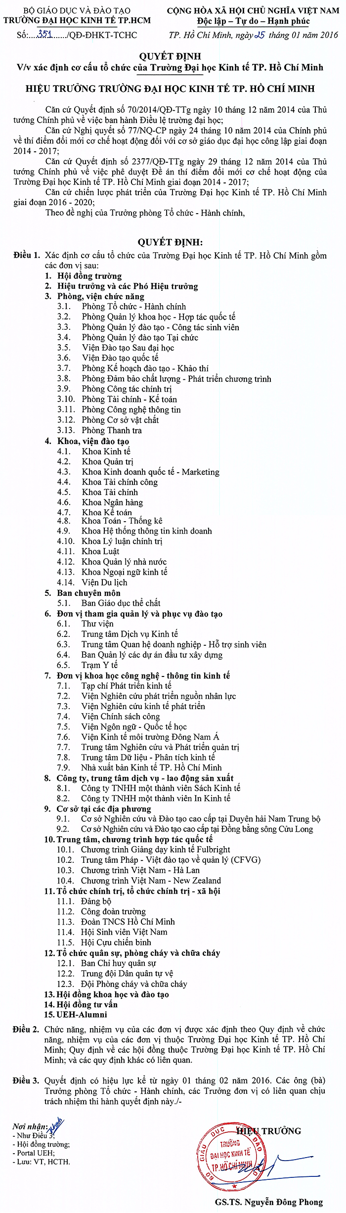 Quyết định về việc xác định cơ cấu tổ chức của Trường Đại học Kinh tế TP. Hồ Chí Minh