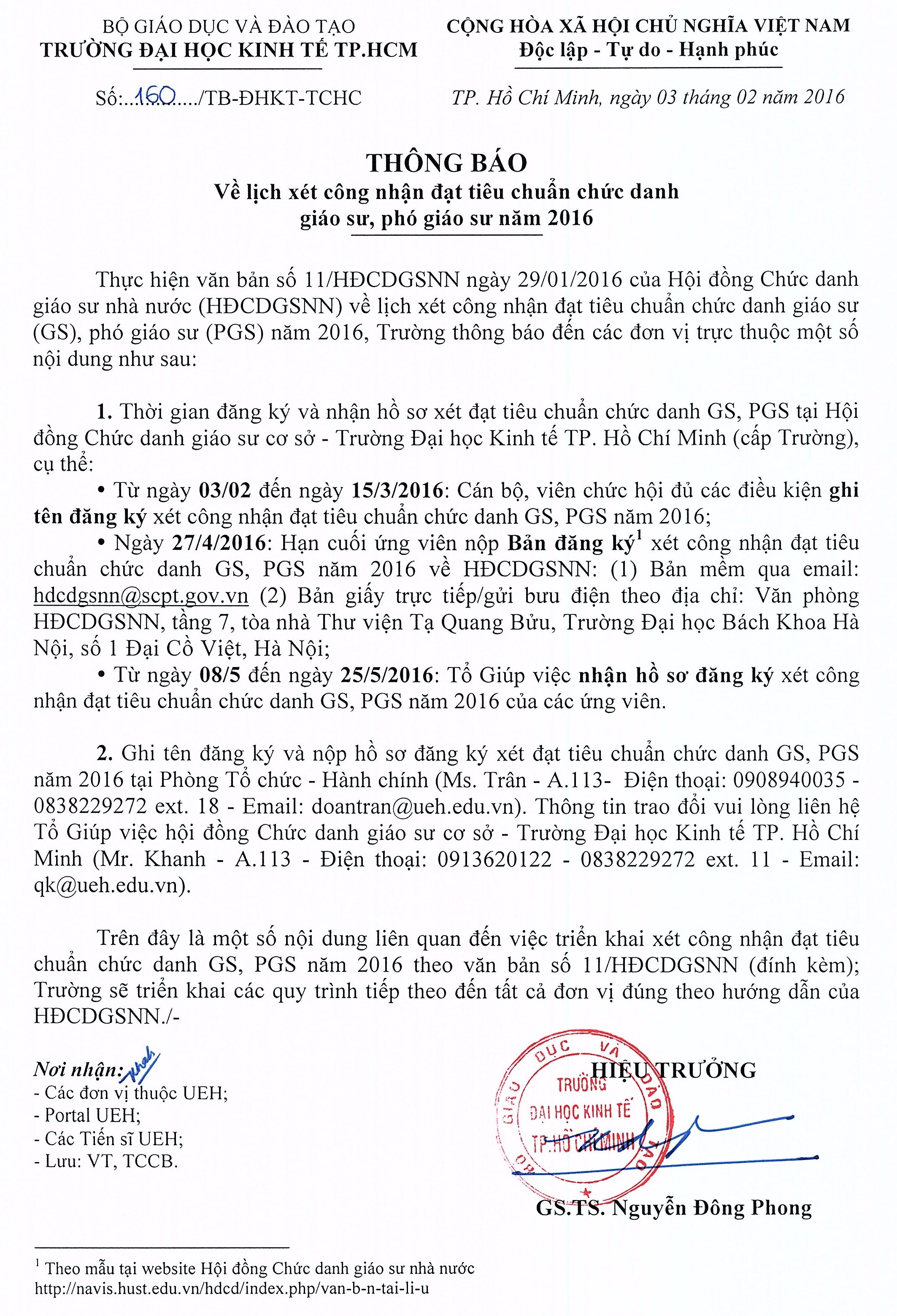 Thông báo lịch xét công nhận đạt tiêu chuẩn chức danh GS, PGS năm 2016 của HĐCDGSNN