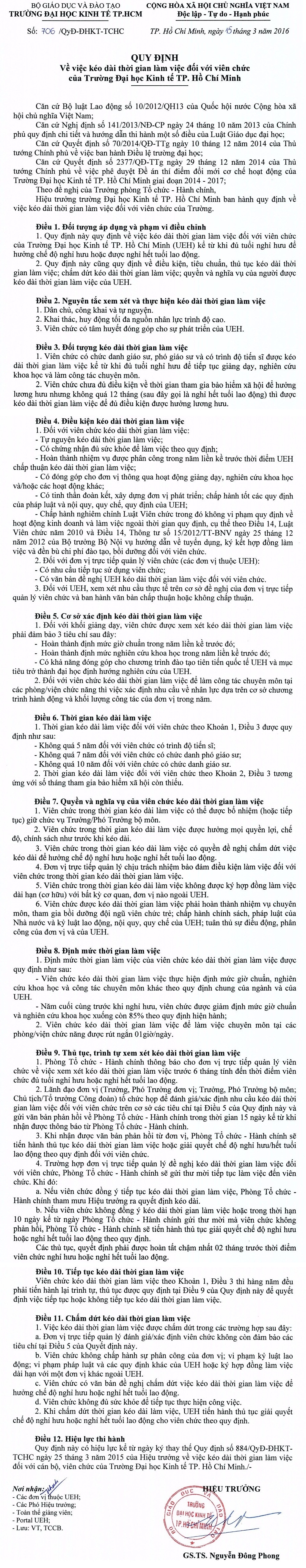 Quy định về việc kéo dài thời gian làm việc đối với viên chức của Trường Đại học Kinh tế TP. Hồ Chí Minh