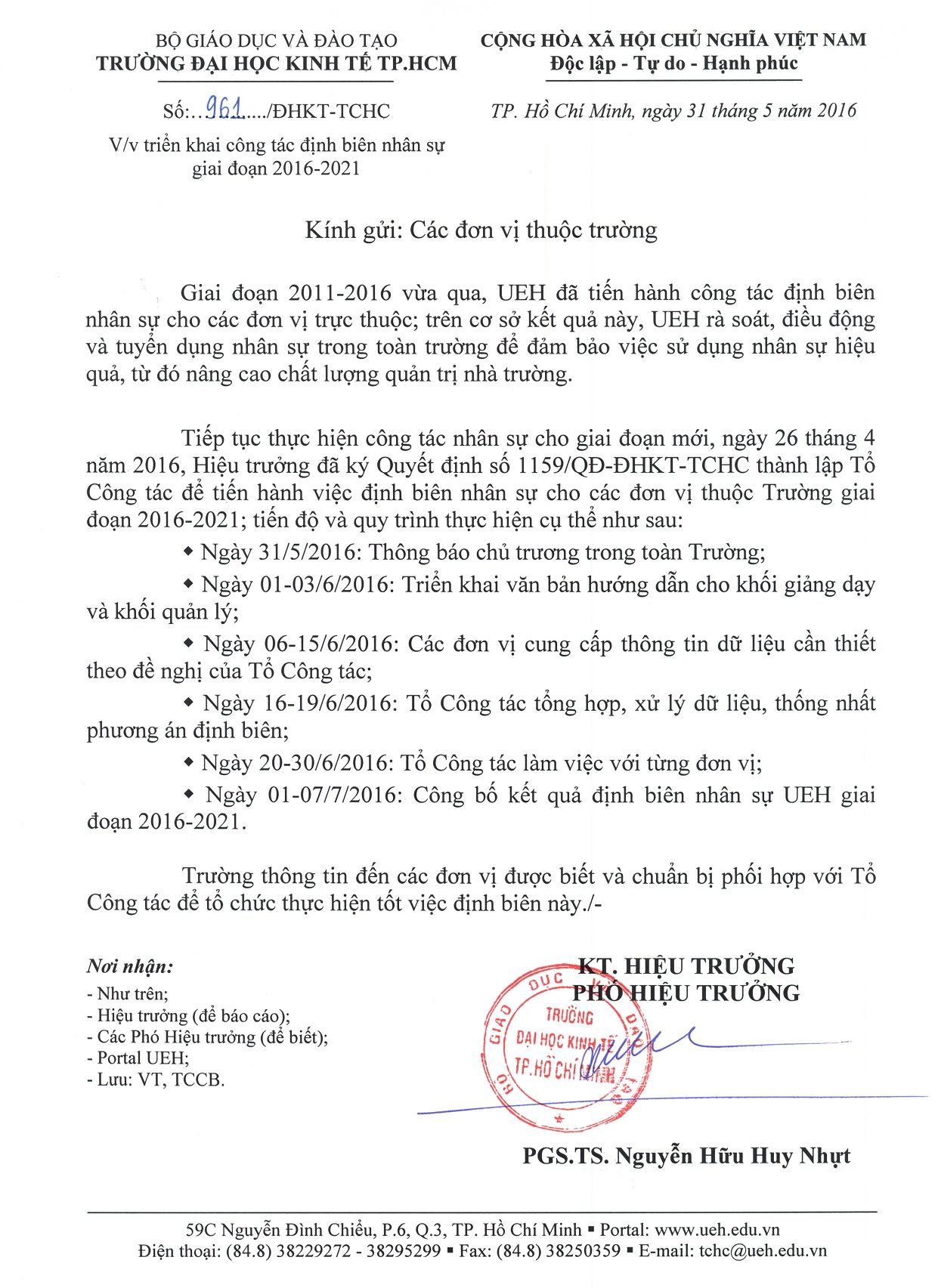 Công văn về việc triển khai công tác định biên nhân sự 2016-2021